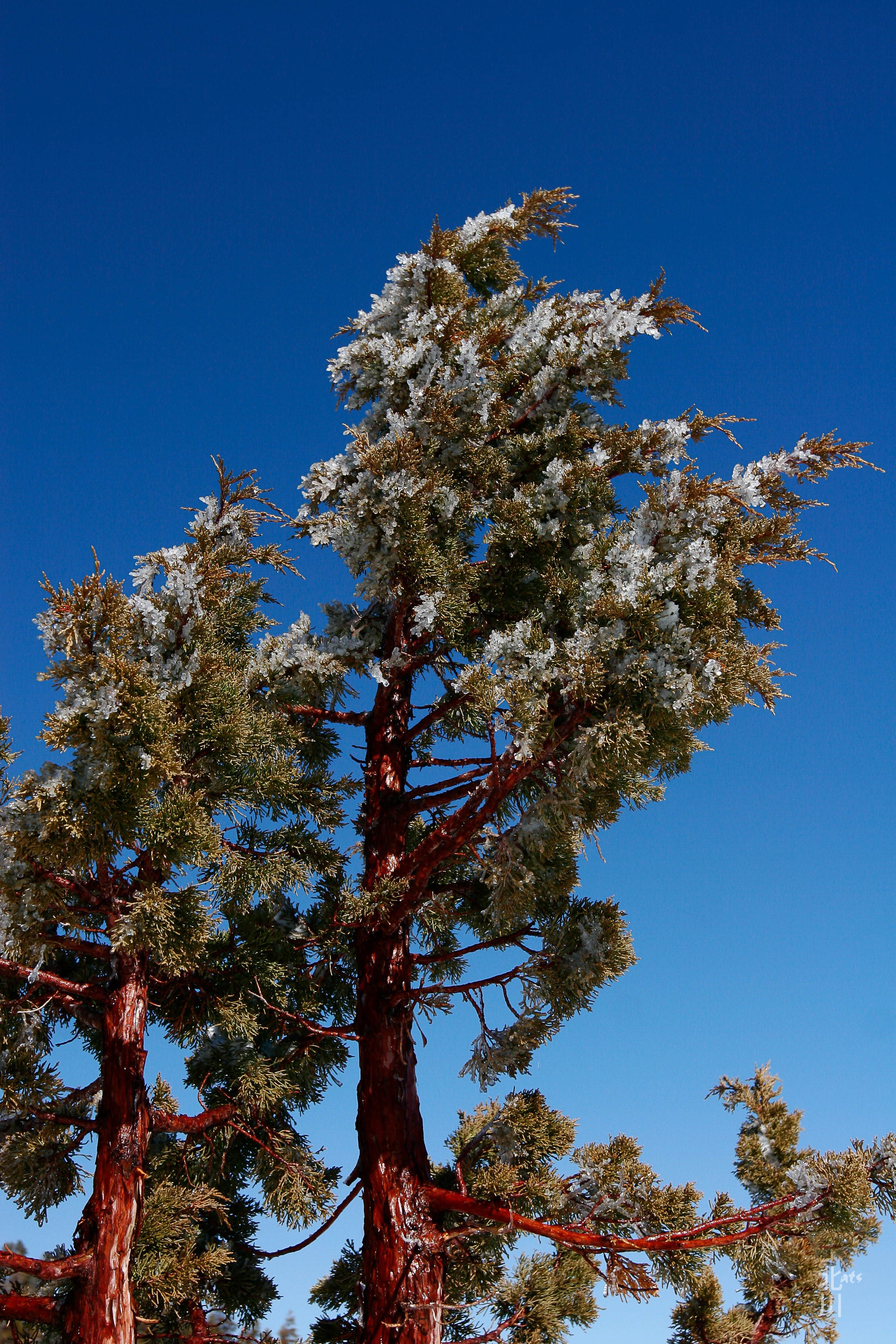 This Juniper tree still had all these frozen ice crystals from the storm the night before. It created a cool looking natural flocking.