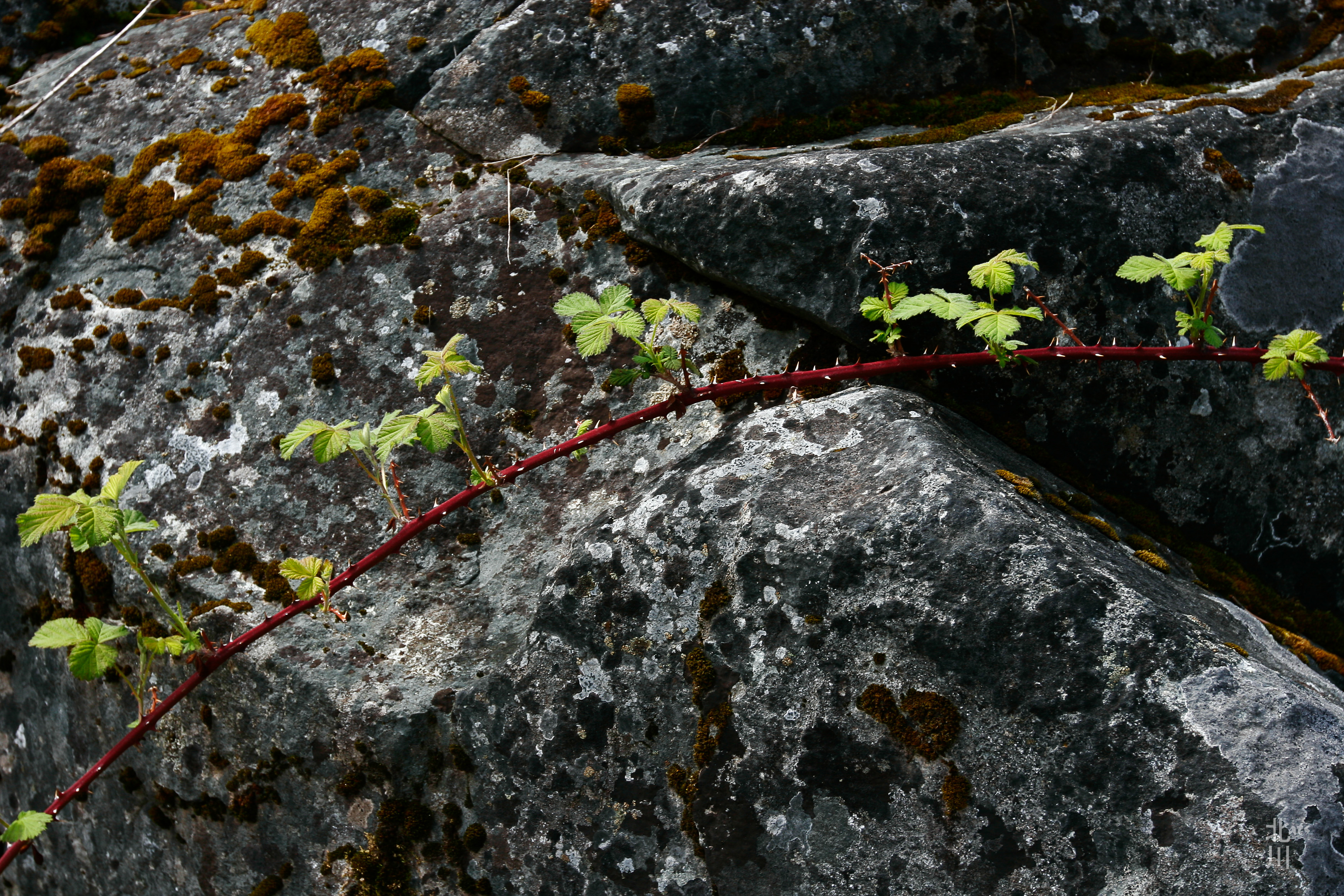 Not sure why but I thought that this thorny berry branch was an interesting contrast against the granite boulder.