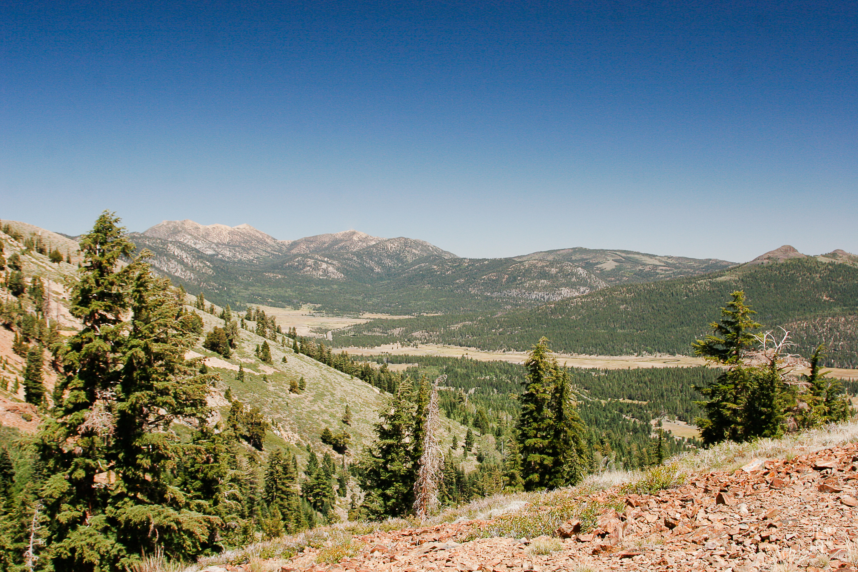From a ridge near Crater Lake, you can see Hope Valley below. That’s Pickett Peak and Hawkins Peak to the left.