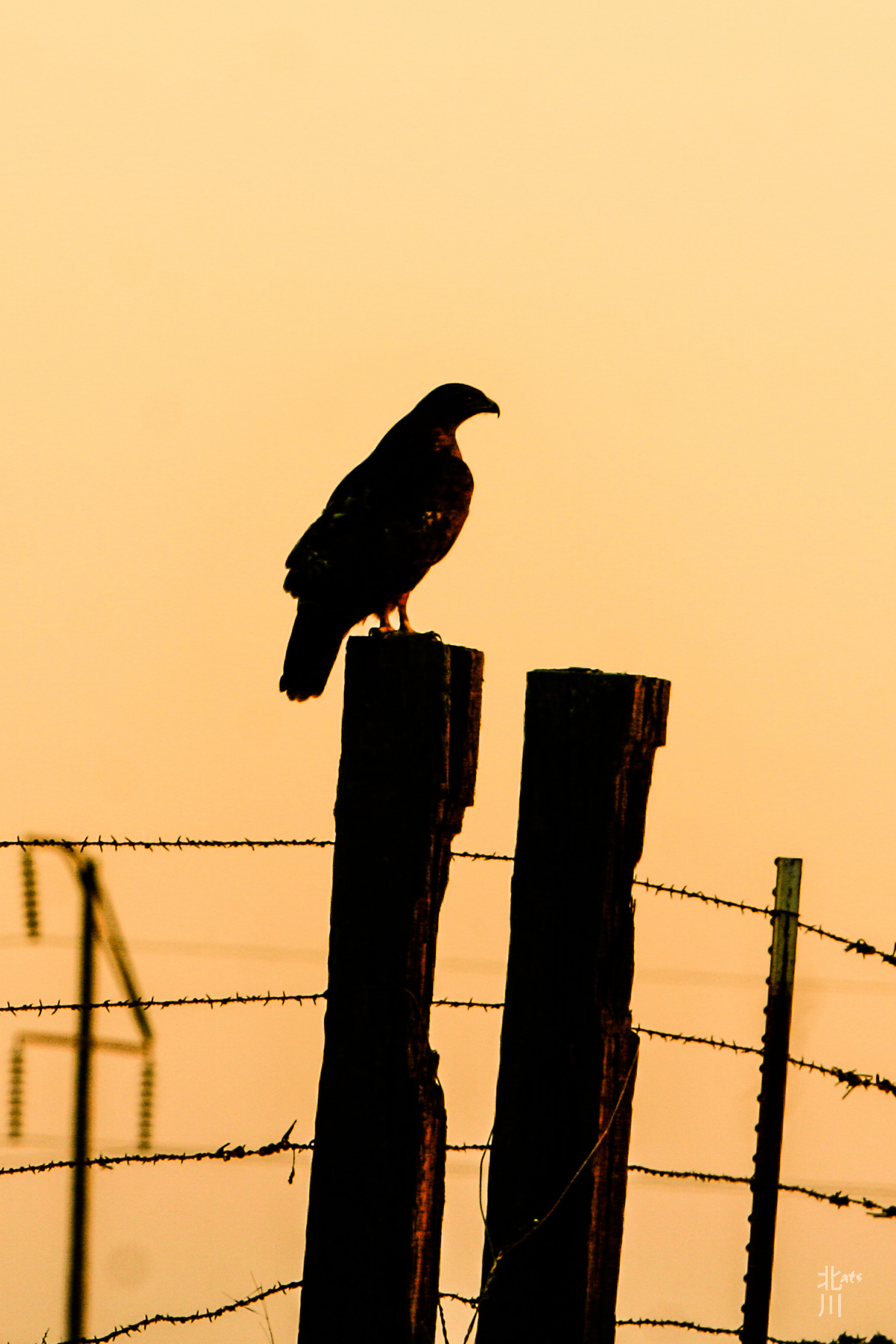 It was another back road adventure down a less traveled road when I saw this hawk sitting on a fence post. The sunset was setting and I pulled over and grabbed the camera. I fired off a few shots before he took off into the hazy sunset.