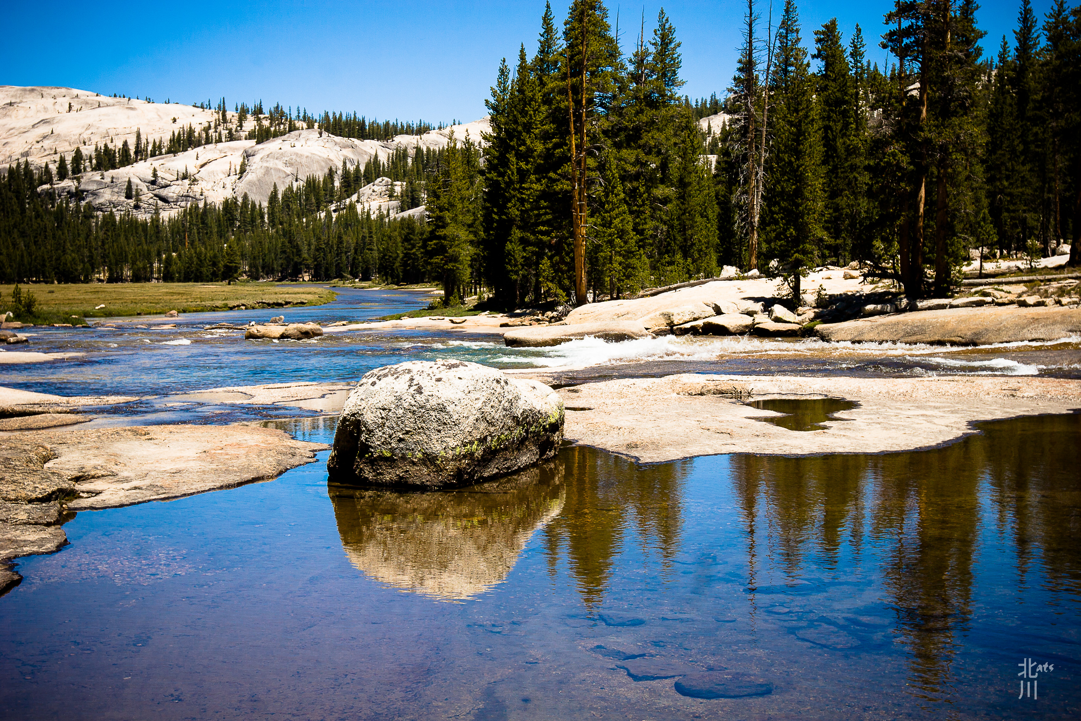 With the water so low in the river, boulders appear when normally underwater. I was able to capture reflections in the pools along the river.