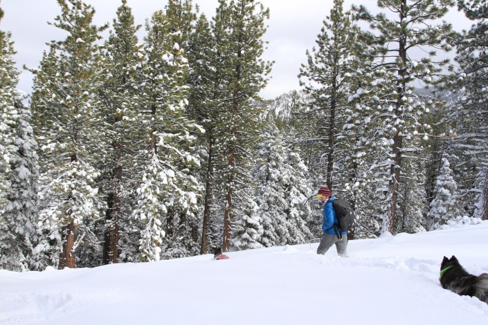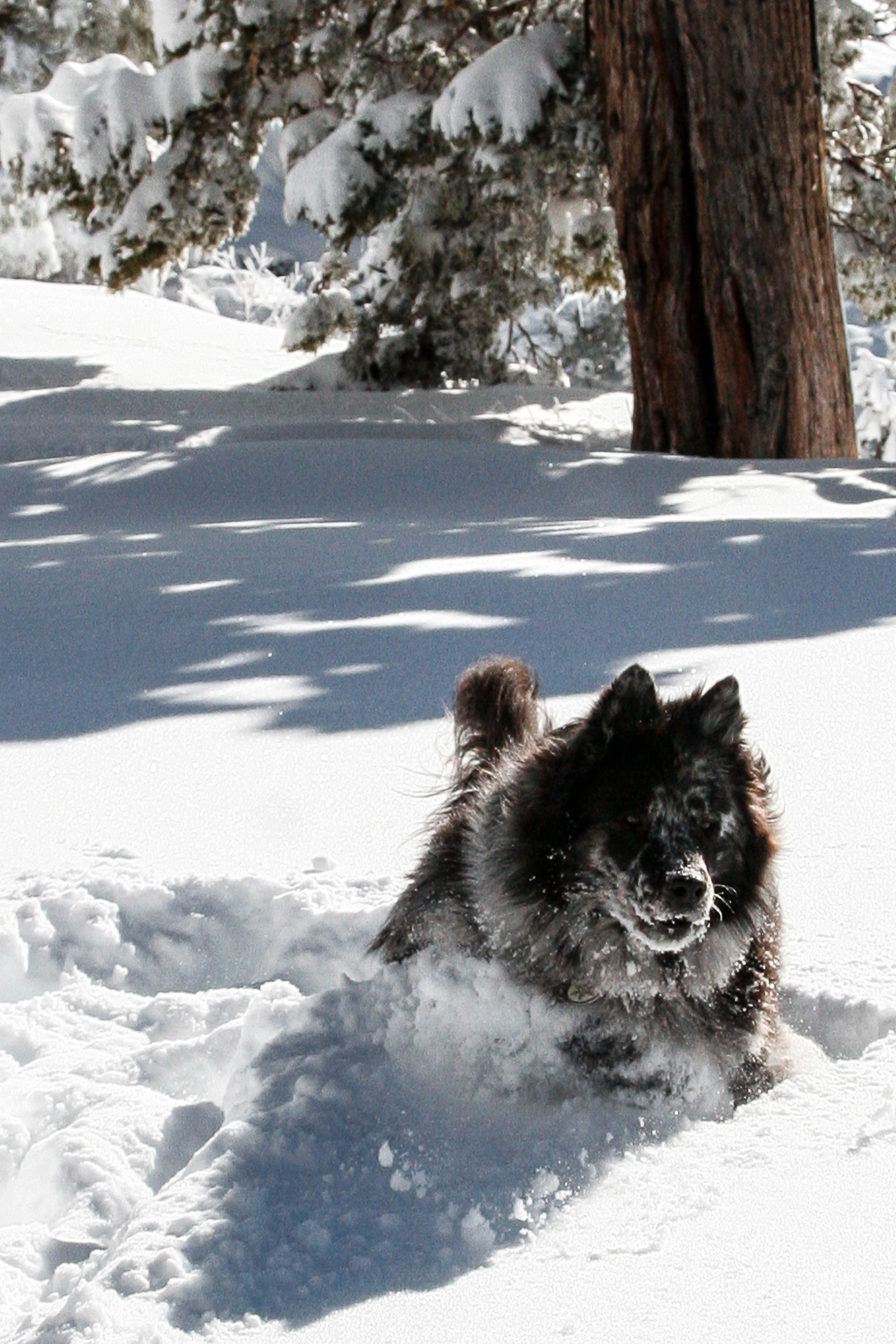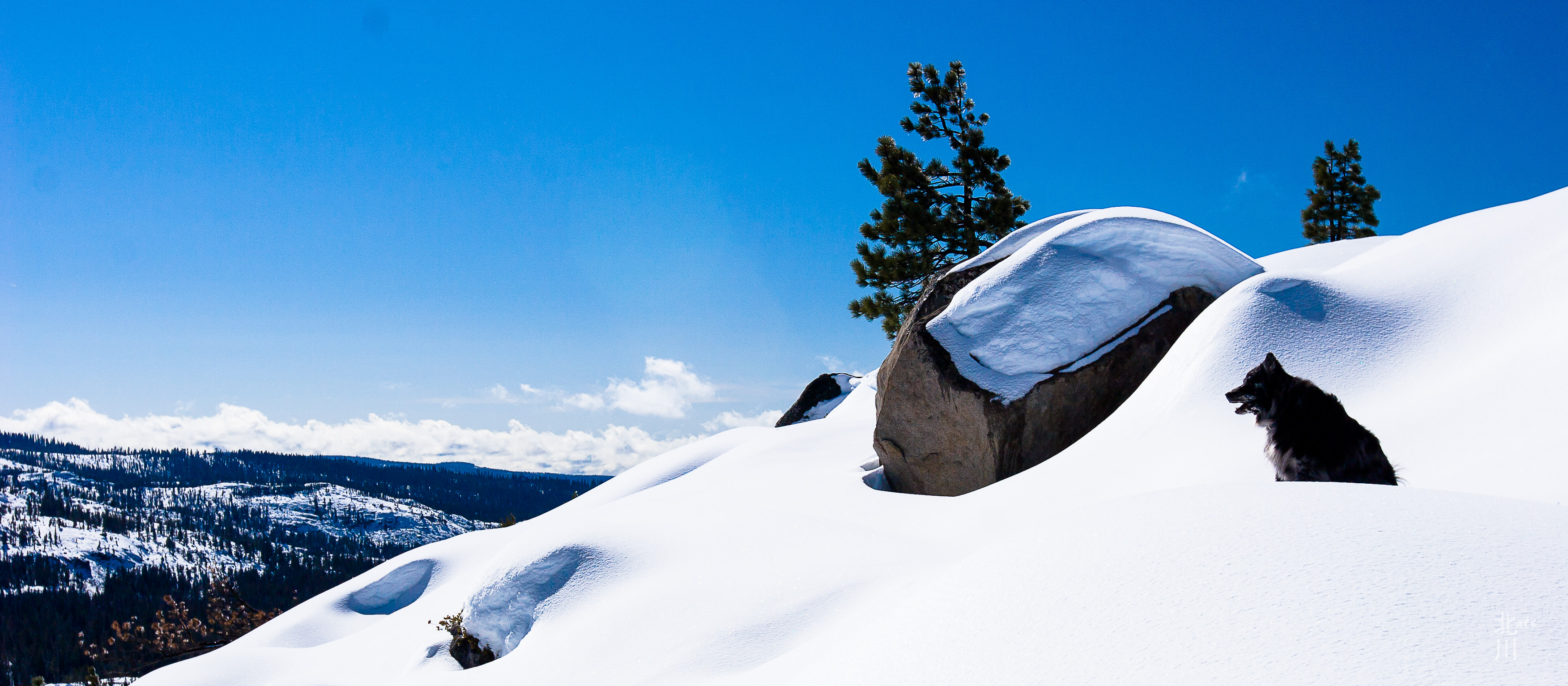 My dog loves the snow. There is this spot along highway 88 that we stop at every once in awhile. It had snowed the night before. My dog got out of the car and romped all over the place. She got to this point, took a rest and if I could have read her mind, she was thinking, “Ohhh there’s more SNOW TO PLAY IN!!”