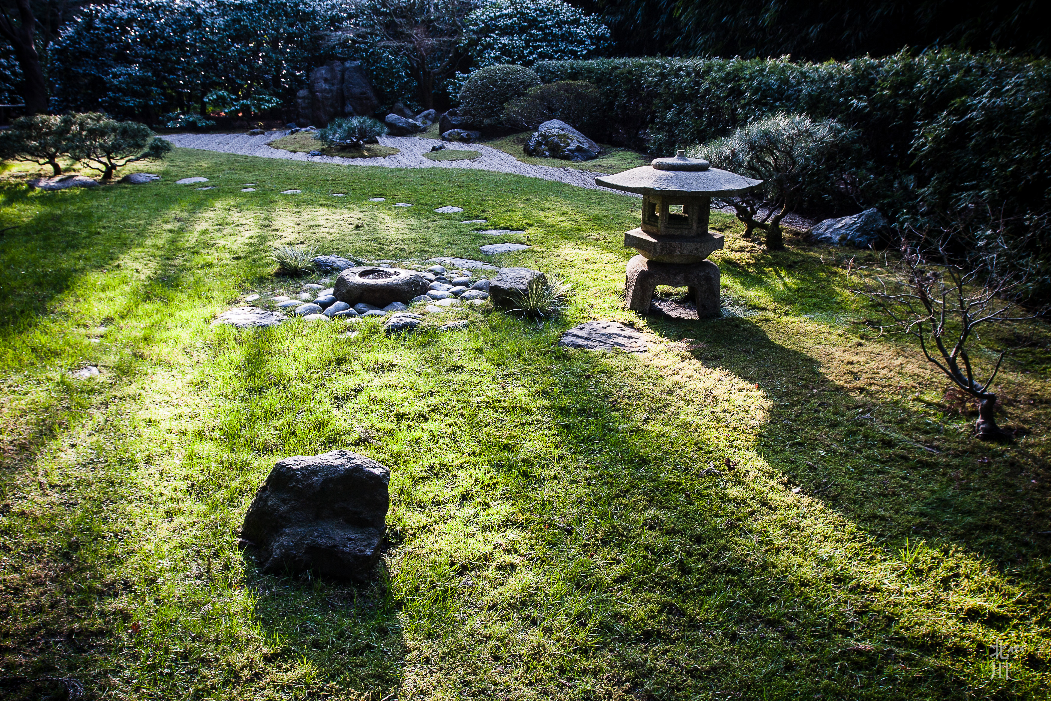 I walked over to the San Francisco Japanese Tea Garden looking for Spring blossoms. It’s late January on the West Coast but the unseasonal warm weather has trees showing color early. When I got there, the Tea Garden itself didn’t have much to offer in the way of colorful blooms and I was disappointed. I walked towards the back of the garden and the sun was peeking through the trees. It added another texture to the Zen Garden.