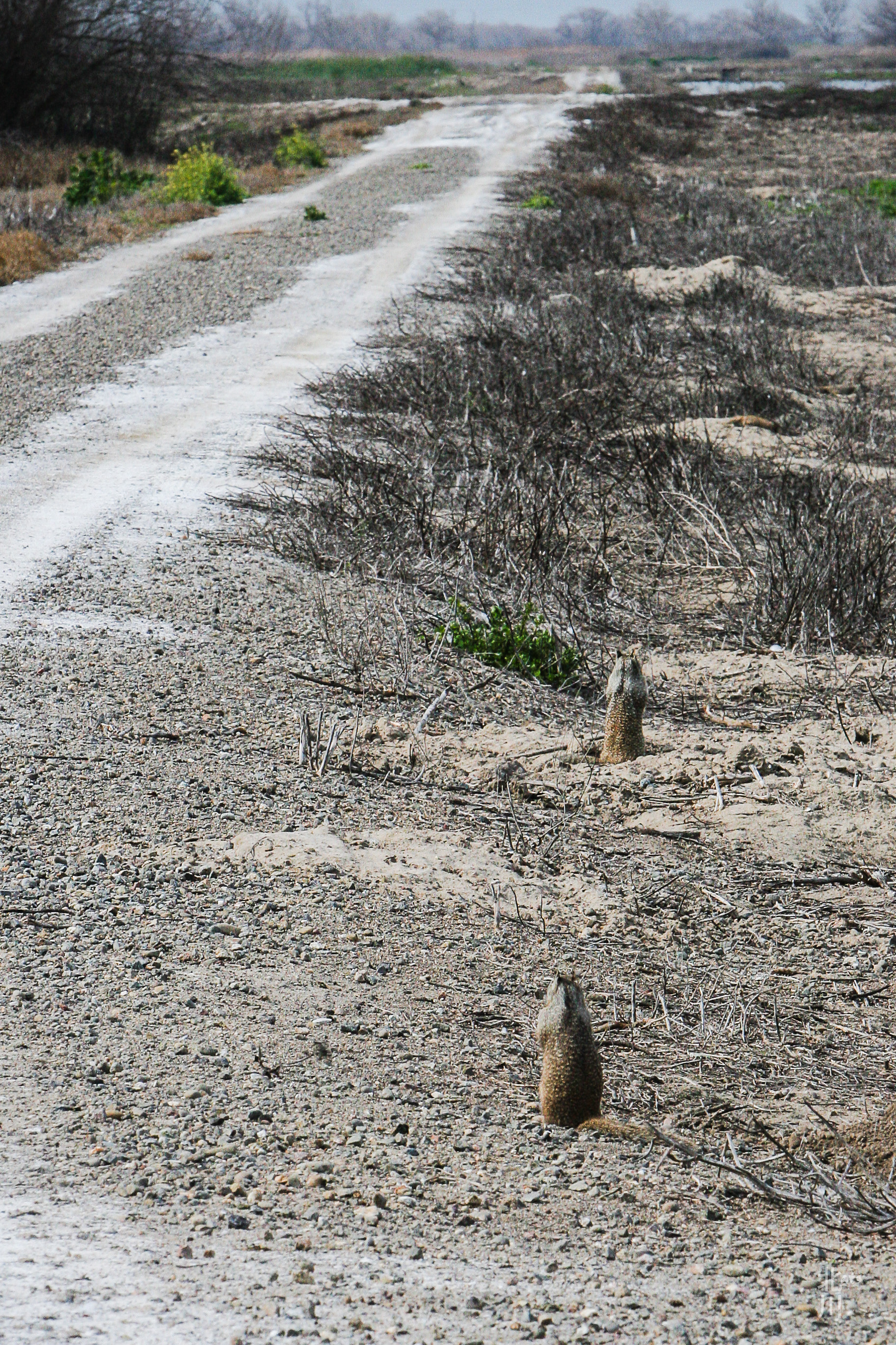 These ground squirrels were looking down the road, ever vigilant.