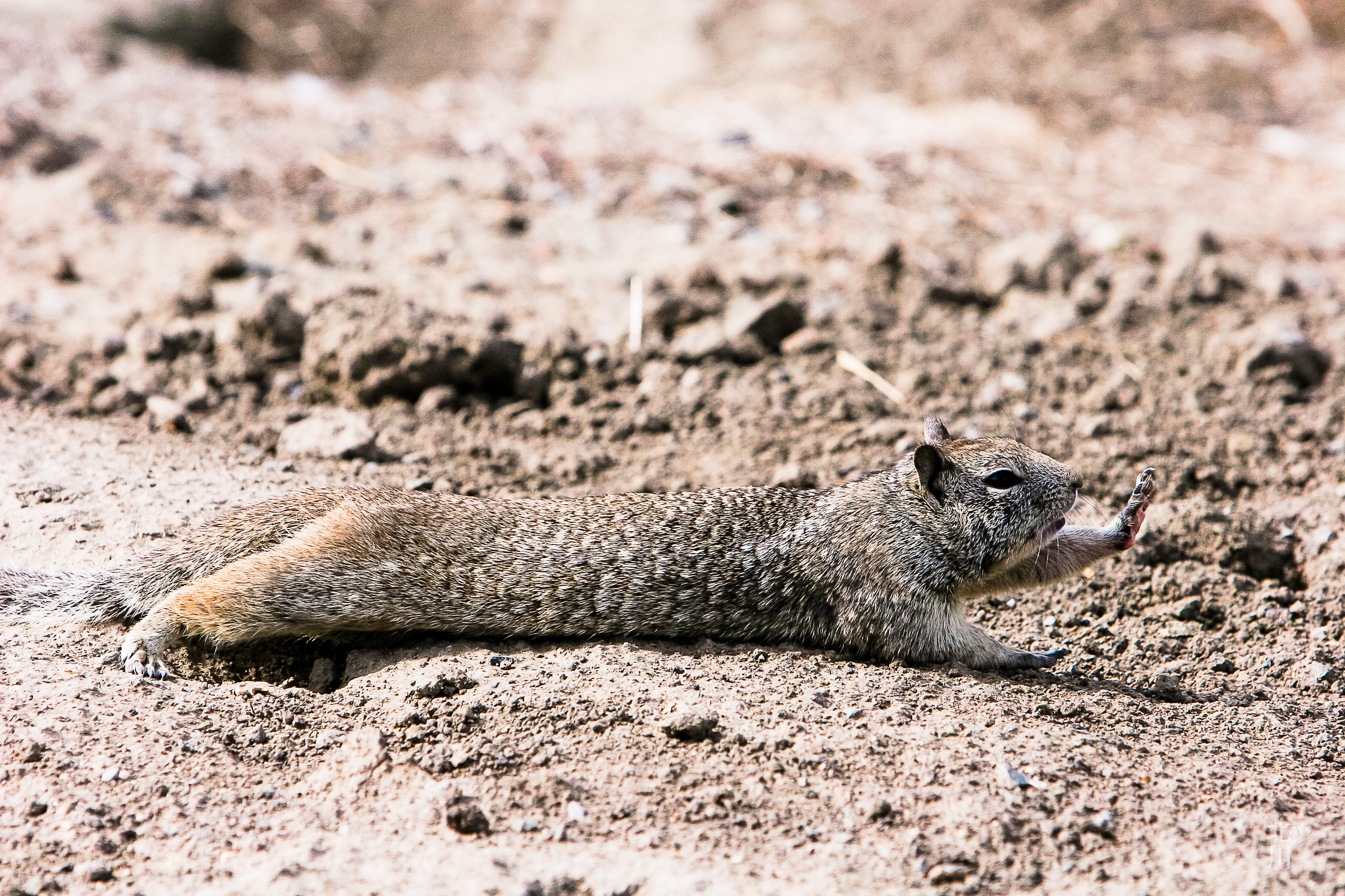 This little ground squirrel came out of its burrow and did a series of stretches for me.