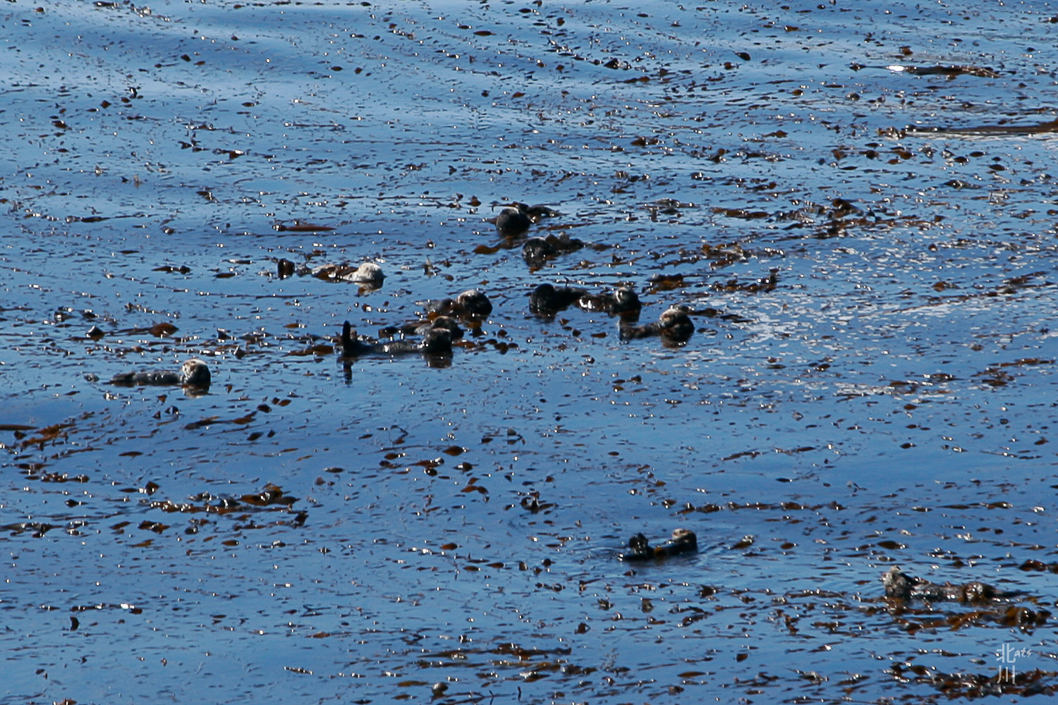 High above this cove we were scanning the water for otters in the water. We spotted a few but I didn’t bring my zoom lens 😦 I used my 105mm and cropped the photo. You can see them bobbing in the water.